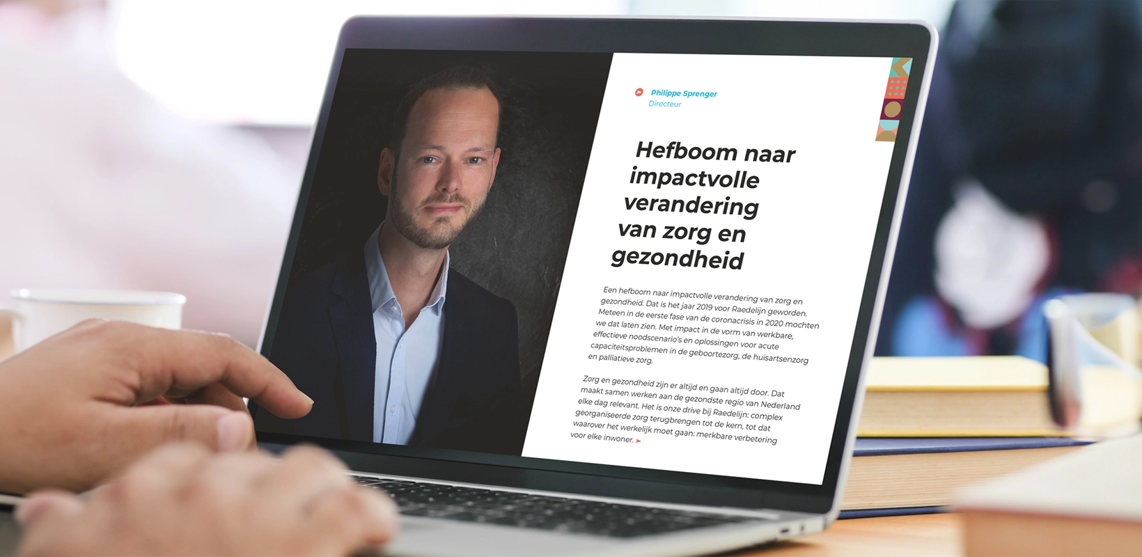 Hij fleurt wachtkamers en directietafels op en maakt nieuwsgierig naar de website van Raedelijn. Daar staat een interactieve pdf klaar met de complete verhalen uit de gezondste regio van Nederland. CASE maakte de interviews, fotografie en infographics.